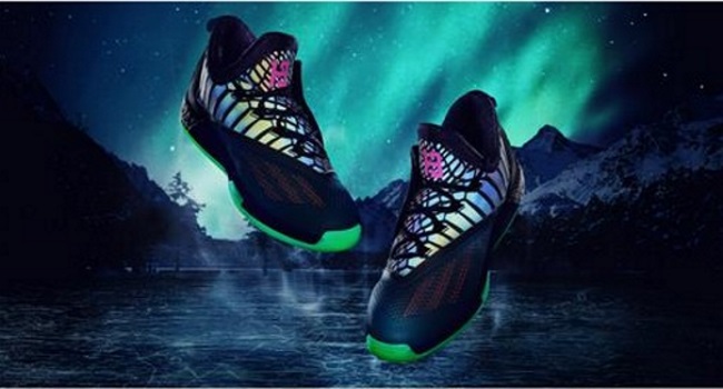 Las zapatillas están diseñadas con brillo en la parte superior que le otorgan un estilo particular. Cada modelo utiliza dos pares de paletas de colores brillantes que mezclan texturas graduales de puntos y acentos de color púrpura que reflejan la aurora boreal. La malla es de color verde azulado y escalas Xeno reflectantes y se extiende desde el talón hasta los dedos del pie.