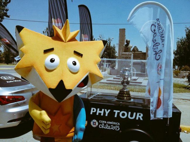 La Tarjeta Oficial de Copa América aprovechó la llegada de la Copa a Chile para dar el vamos al inicio del Trophy Tour, el que durará un mes y que tiene como objetivo compartir la Copa con todos los chilenos. Este recorrido que consiste en que el trofeo podrá ser compartido a través de las redes sociales por el público en todas las ciudades sedes del torneo. Así, la Copa junto al equipo de MasterCard pasarán por las siete localidades durante dos días por ciudad, donde MasterCard proporcionará instalaciones en los estacionamientos de los Mall Plaza en regiones, en Santiago Mall Plaza Vespucio y Oeste, Marina Arauco en Viña, Portal Temuco y Portal Rancagua. Todo esto con la finalidad que todos los hinchas puedan fotografiarse junto al trofeo y al embajador, Marcelo Salas.