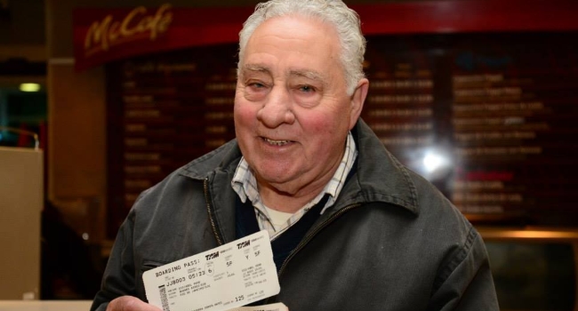 Este bahiense de 79 años ganó semejante premio gracias a un cupón de la promoción SuperFan de McDonald’s en la que tenía que redactar un mensaje creativo de hasta 140 caracteres inspirado en la pasión futbolera. Una de sus nietas fue la que lo ayudó a escribir “El fútbol es mi pasión. Veo todos los partidos de la Selección y con casi 80 años sueño con ver a la Argentina por tercera vez campeón” y, gracias a eso, fue elegido por McDonald’s para ir junto con un acompañante a Río de Janeiro.