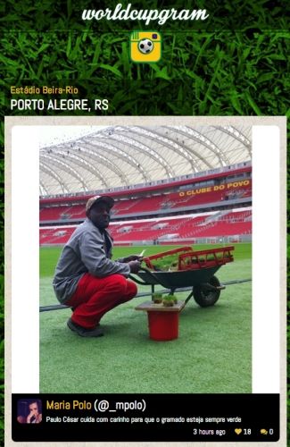 Tercerclick, agencia de publicidad digital especializada en redes sociales, ideó Worldcupgram. ¿De qué se trata? Simple. Una aplicación que nuclea todas las fotos subidas a las redes sociales desde alguna de las doce sedes de Brasil 2014. De esta manera, todo el universo futbolístico podrá seguir, en primera persona, lo que ocurra durante todo el mes de competencia: imágenes de los estadios, todo el color de los hinchas y mucho más.