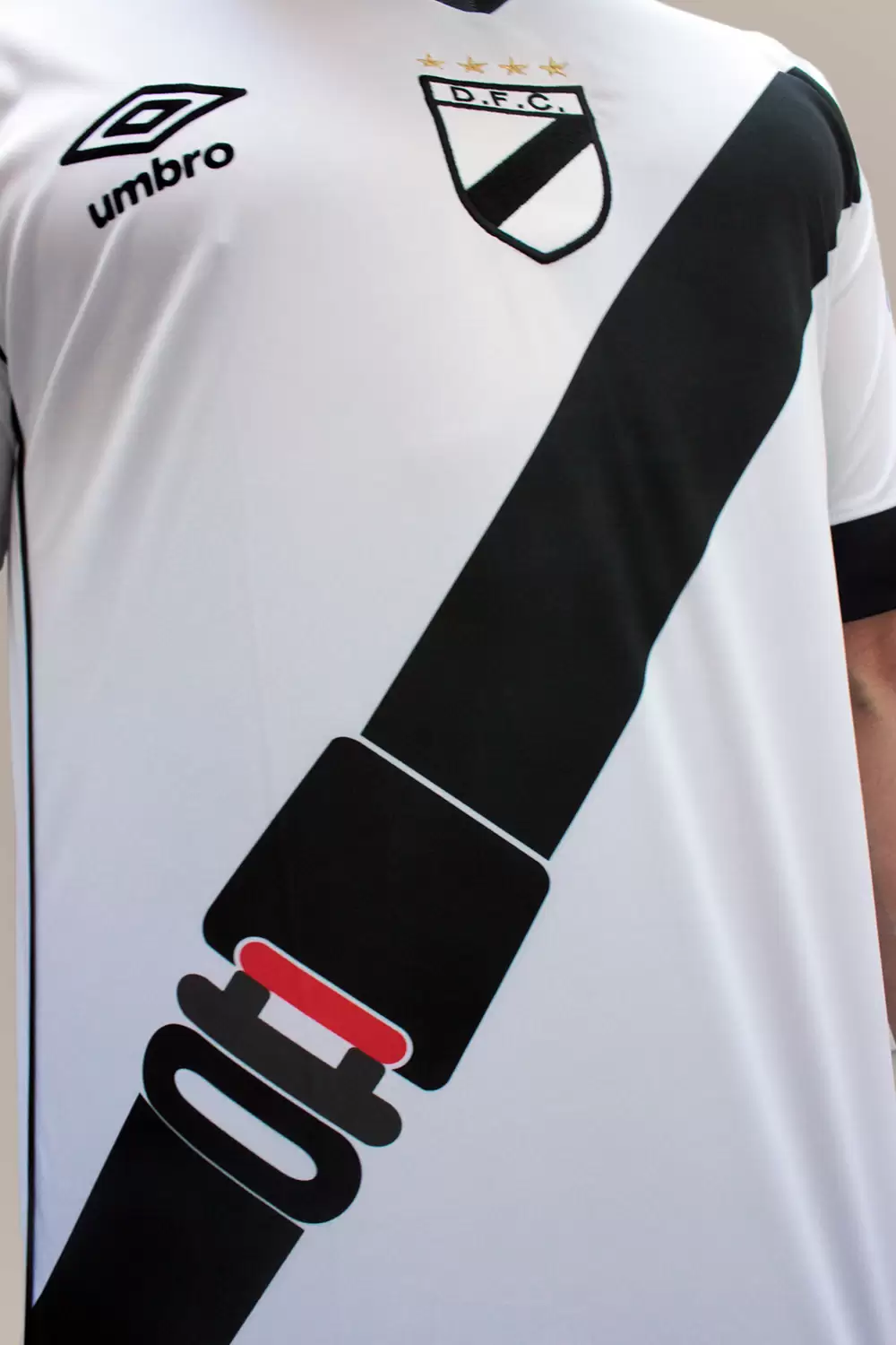 En el partido ante Peñarol la clásica franja negra de la indumentaria de Danubio será sustituida por un cinturón de seguridad.