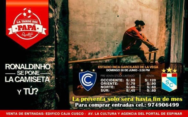 El 26 de junio será el día esperado por todos los hinchas de Cienciano para ver, al menos por un rato, a Ronaldinho con la camiseta del equipo de Cuzco.