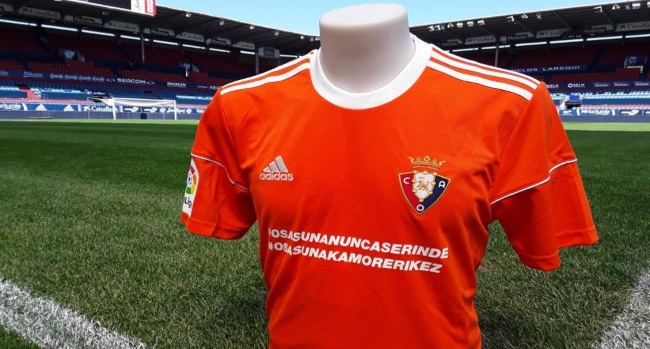 Esta prenda, de color naranja, será vendida a los hinchas, y cuenta con las leyendas #OsasunaNuncaSeRinde y #OsasunaKamorErikEz.