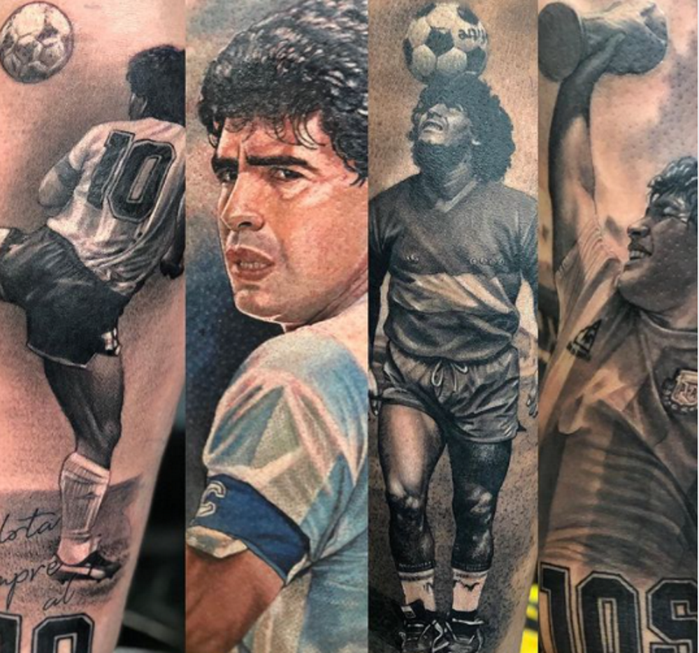 “El primero fue Eric Aparicio hace 5 años. Después un compañero suyo lo vio y ahí empezó el boca en boca que es la mejor publicidad que uno puedo tener. Hoy estoy tatuando a muchos profesionales y siempre hablamos de Maradona y terminamos abrazados por el sentimiento”, remarcó.