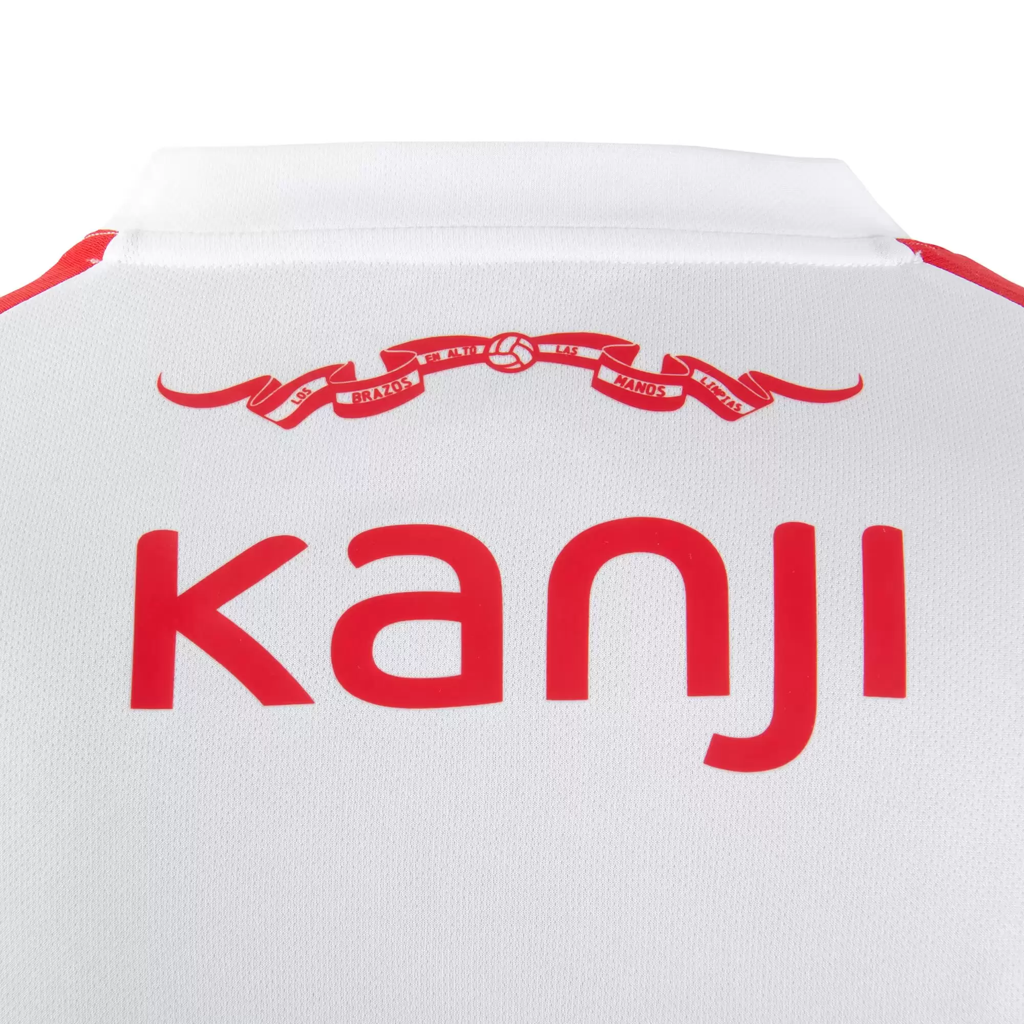 Independiente dio a conocer hoy su nueva camiseta alternativa para la temporada 2025-26. El diseño presenta un patrón blanco con mangas y franjas rojas verticales tanto en la camiseta como en los shorts. Lo que llama la atención es un detalle cargado de simbolismo: un pequeño listón rojo en el cuello con la frase “con los brazos en alto y las manos limpias”, un saludo histórico que remonta a los años 60 y al espíritu ganador y transparente que pretende reflejar el club.