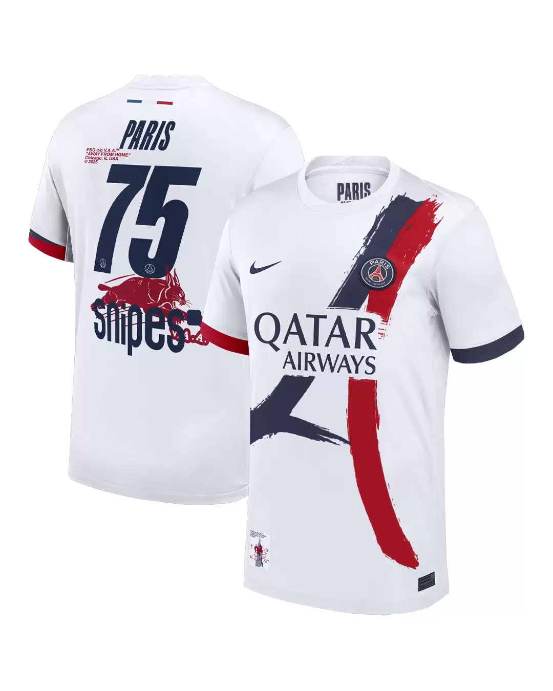 La colaboración también se realiza con la rama comunitaria del club, y los beneficios de las ventas también se reparten entre el Fondo de Dotación del PSG y el programa ABLOH AIR de la Fundación Virgil Abloh. Si bien la colaboración entre el PSG y Off-White nunca se materializó, esto, en parte, ofrece una idea de lo que podría haber sido. Esta impresión es la última edición de la exclusiva serie colaborativa de Les Parisiens, que sigue la estela de artistas como Central Cee y The Weeknd.