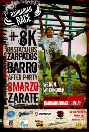 Bajo el lema “We run, we conquer” se correrá el próximo 8 de marzo en el Camping Las Tejas, de Zárate, Buenos Aires, una nueva edición de la Barbarian Race. Como indica en su descripción, esta carrera es “la más salvaje y divertida de Argentina”. Los competidores no sólo deberán cumplir el trazado sino que también tendrá que sortear diferentes obstáculos a lo largo del recorrido, tales como agua y barro.