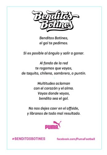 Una canción, publicidad en las calles, videos y gráficas en las redes sociales componen la gran campaña Benditos Botines ideada por Puma Argentina especialmente para Sergio Agüero de cara a la participación del jugador del Manchester City en Brasil 2014.