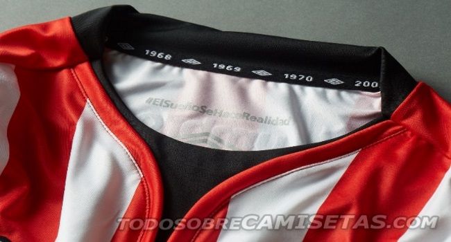 Además incorpora los años en lo que lograron la Copa Libertadores y en parte baja de espalda la frase “Campeón del Mundo”.