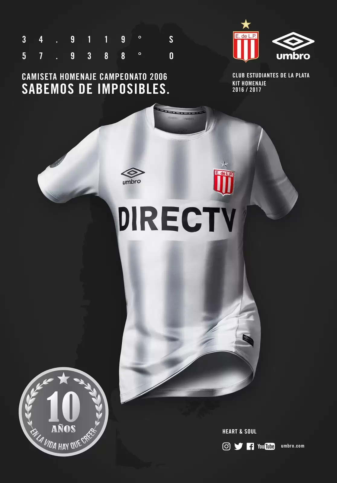 Diez años después del título obtenido en 2006, con Diego Simeone como entrenador, Estudiantes de La Plata presentó su nueva camiseta homenaje, diseñada por Umbro.