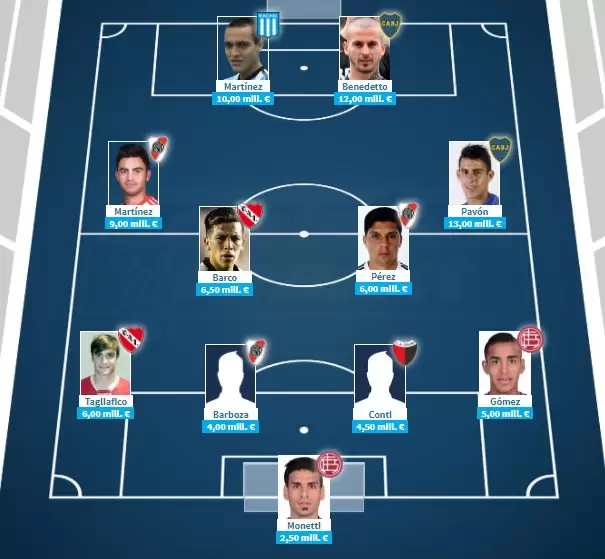 River cuenta con 3 jugadores, Boca con 2, al igual que Independiente y Lanús, y por último, Racing y Colón aparecen con uno cada uno.