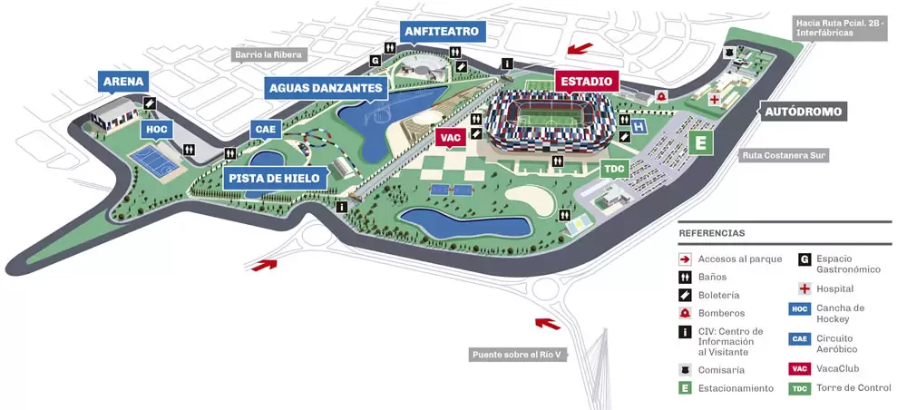 Y es que, en una “obra fuera de lo común” en donde se invirtió más de 91.8 millones de dólares, el Nuevo Estadio La Pedrera mejor conocido como Estadio Único de Villa Mercedes reúne en un polideportivo completo, una arena con capacidad para 2.500 personas (para básquet, boxeo y vóley), una cancha de hockey sobre césped, un parque de skate, un circuito aeróbico, una pista de hielo, una laguna con aguas danzantes, un anfiteatro, amplios estacionamientos con más de 2.000 plazas e incluso su propio cuartel de bomberos.