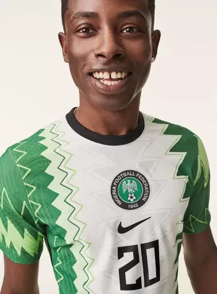 El último lugar del podio de las camisetas más destacadas de este año es para la camiseta local de la Selección de Nigeria. De la mano de Nike, el combinado de las Águilas, presenta una camiseta en la que predomina el color blanco y tonos de verde que buscan brindar una estética similar a las túnicas “agbadas”. El escudo está en el centro de la camiseta.