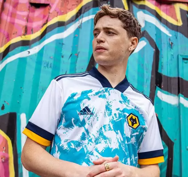 El segundo puesto fue para la camiseta alternativa del Wolverhampton. El diseño elegido para el equipo de la Premier League presenta el template “Condivo 20” y combina el color blanco con el celeste, naranja y negro.