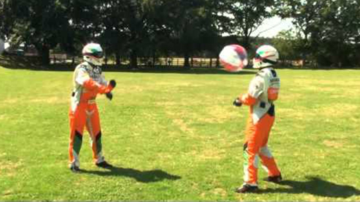 Tomando sol, jugando con la pelota, o al cricket, de maneras muy divertidas pero siempre vestidos con la indumentaria del team, así se divierten los empleados de Force India. Te puede interesar:Apple y la F1 apuestan por la experiencia inmersiva en salas IMAX