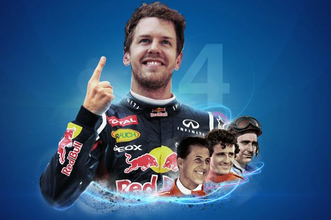De esta manera, el joven piloto alemán alcanza al francés Alain Prost, que también ganó 4 titulos de Fórmula 1, hace exactamente 20 años. Y ahora, por delante sólo al argentino Juan Manuel Fangio con cinco, y a su compatriota e ídolo Michael Schumacher con siete coronas.
