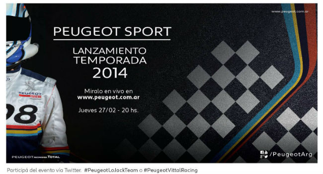 Mañana a partir de las 20Hs. Peugeot Argentina transmitirá en vivo y en directo a través de su sitio web www.peugeot.com.ar/ el Lanzamiento de la Temporada 2014 de Peugeot Sport, que este año contará con equipos oficiales de competición en las categorías de automovilismo deportivo “Súper TC2000”, con los tres 408 del #PeugeotLoJackTeam; y “TN Clase 3”, con los cuatro 308 del #PeugeotVittalRacing.