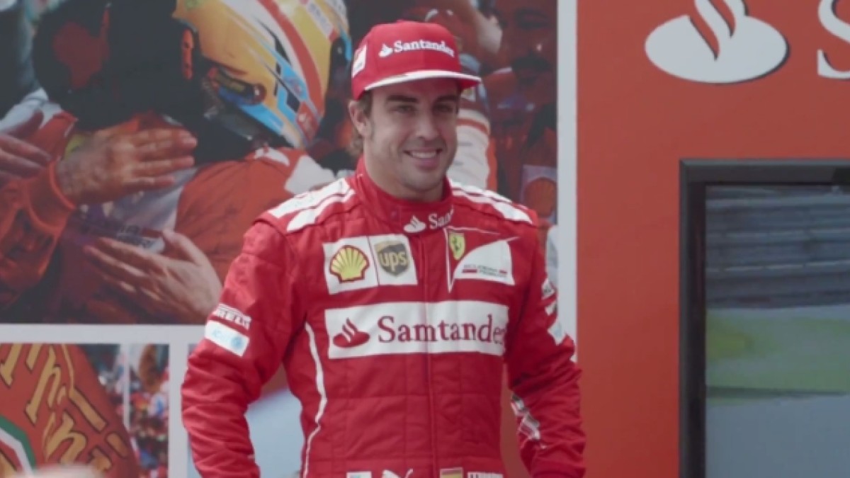 “Banco Santander ha sorprendido a Fernando Alonso en Nueva York para dar la bienvenida a la Fórmula 1 a Estados Unidos, donde este fin de semana se celebra el Gran Premio de Austin. Alonso pensó que iba a una rueda de prensa y no se esperaba lo que iba a ocurrir. Cuando se sube al escenario entre vítores de los asistentes, un niño le pide que encienda el motor de un monoplaza que está situado junto al escenario. En ese momento, comienza la sorpresa…” describe el video en Youtube que tuvo una gran cantidad de visitas.
