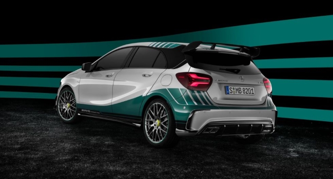 El diseño del nuevo A45 emula el de los monoplazas del campeón Hamilton y el subcampeón Nico Rosberg en las “flechas de plata”, con tonos grises y verdes. Además, cuenta con una placa conmemorativa.