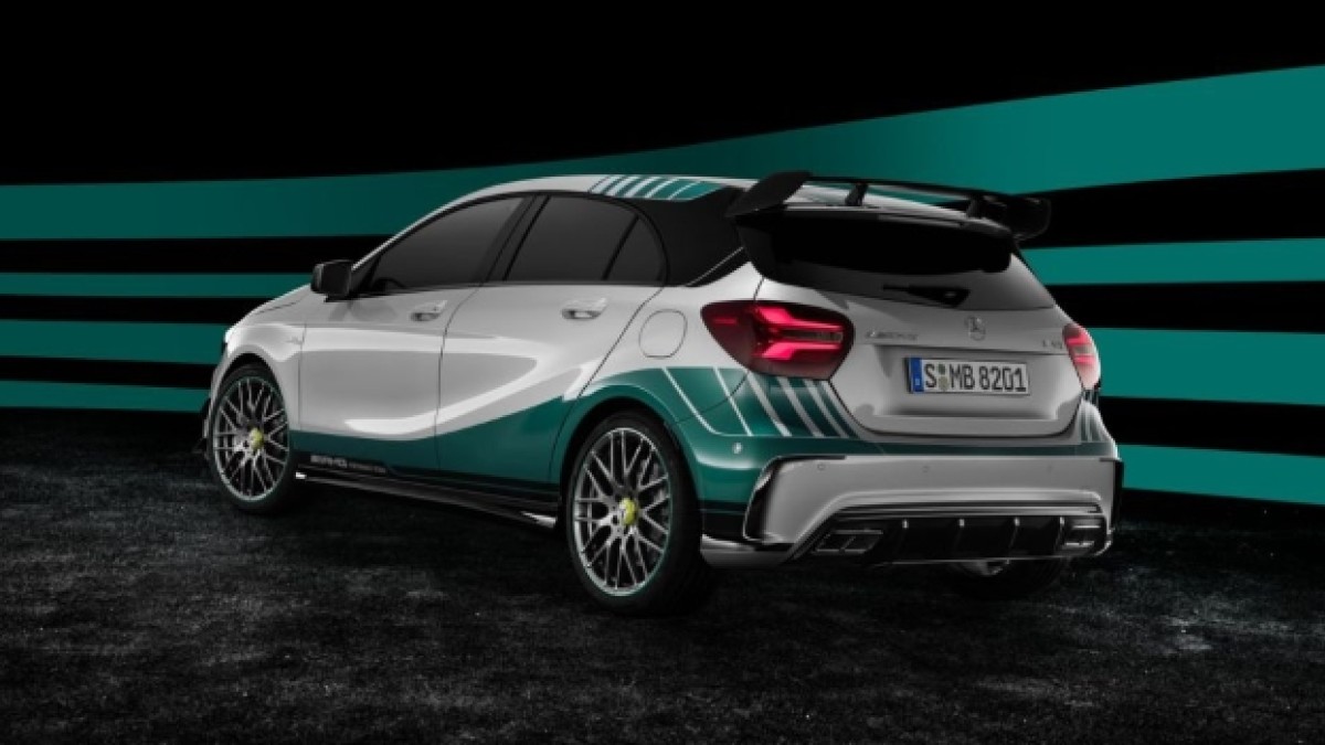 El diseño del nuevo A45 emula el de los monoplazas del campeón Hamilton y el subcampeón Nico Rosberg en las “flechas de plata”, con tonos grises y verdes. Además, cuenta con una placa conmemorativa.