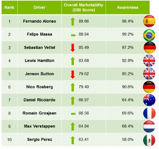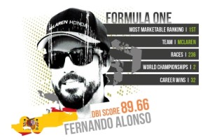 La prestigiosa empresa Repucom, líder en Europa en Marketing Deportivo, elaboró un informe midiendo el nivel comercial de cada uno de los pilotos de la Fórmula 1 en este 2015. El español Fernando Alonso, dos veces ganador del “Mundial de Automovilismo”, se ubica en lo más alto.