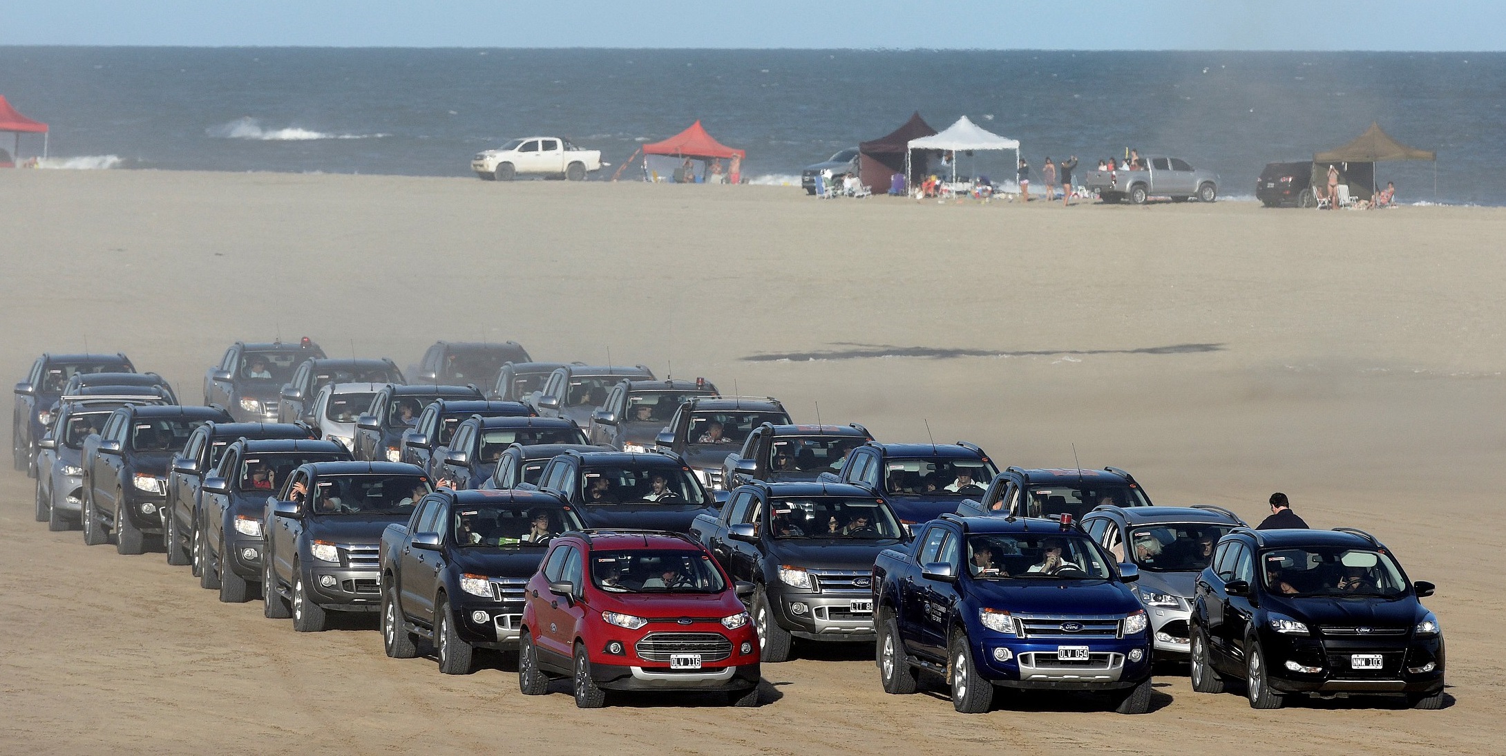 La caravana compuesta por más de 30 vehículos 4x4 Ford -Ranger, Kuga y Ecosport- partió desde el espacio que tiene la marca en Av. Cerezo y Divisadero, donde los invitados, además, fueron testigos de producciones de fotos con Pia Slapka, Luz Cipriotta y Stephanie Demner junto al nuevo Mondeo, la novedad del óvalo que puede ser conocida por los veraneantes antes de su lanzamiento en 2015.