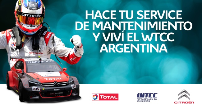 CITROËN Argentina trabaja cada día en mejorar permanentemente sus servicios de postventa y persigue un objetivo cercano de estar en el podio de las marcas más recomendadas por sus clientes. En este sentido, propone un nuevo concurso digital dirigido a todos aquellos clientes que realicen un servicio de mantenimiento en cualquiera de los 64 puntos de servicio de la Red Oficial de Concesionarios CITROËN. Aquellos que hayan realizado su service oficial, podrán ingresar en www.citroen.com.ar y, luego de completar un formulario, participar por un viaje a la fecha del Campeonato Mundial de Turismo (WTCC) que se disputará en Termas de Río Hondo, Santiago del Estero, entre el 5 y el 7 de agosto.