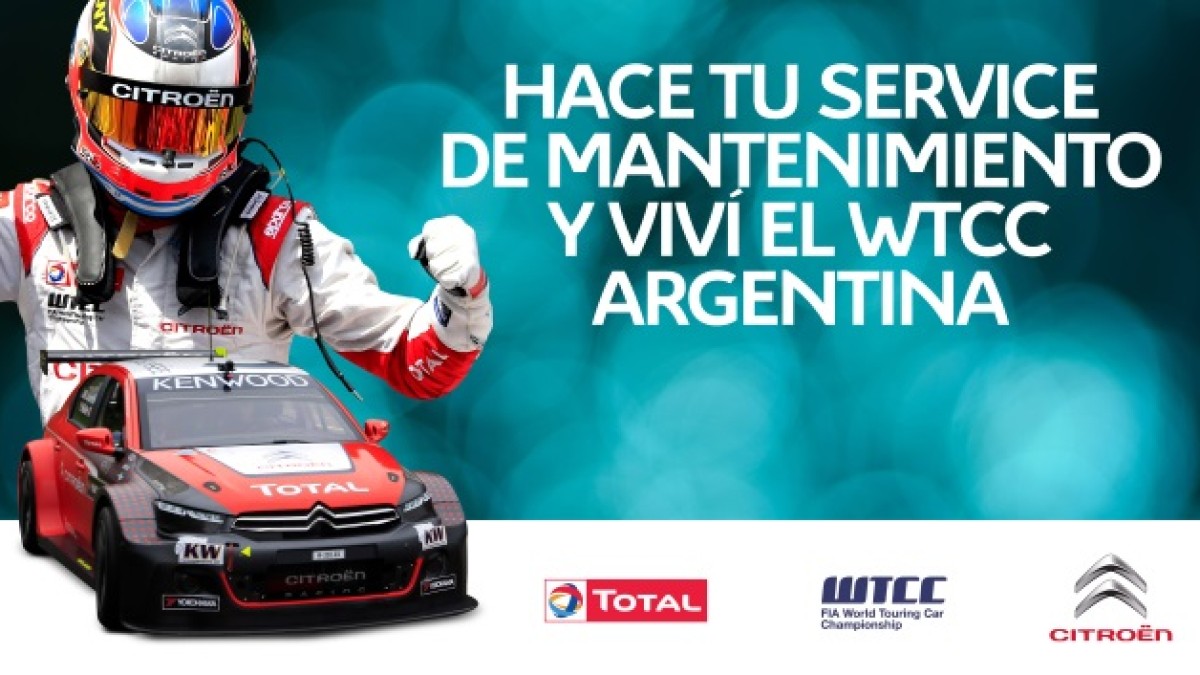 CITROËN Argentina trabaja cada día en mejorar permanentemente sus servicios de postventa y persigue un objetivo cercano de estar en el podio de las marcas más recomendadas por sus clientes. En este sentido, propone un nuevo concurso digital dirigido a todos aquellos clientes que realicen un servicio de mantenimiento en cualquiera de los 64 puntos de servicio de la Red Oficial de Concesionarios CITROËN. Aquellos que hayan realizado su service oficial, podrán ingresar en www.citroen.com.ar y, luego de completar un formulario, participar por un viaje a la fecha del Campeonato Mundial de Turismo (WTCC) que se disputará en Termas de Río Hondo, Santiago del Estero, entre el 5 y el 7 de agosto.
