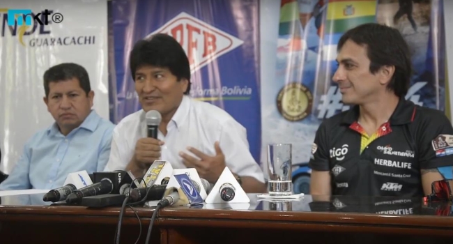 Chavo Salvatierra junto a Evo Morales antes del Rally Dakar 2017
