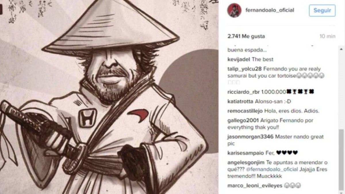 En esta ocasión, el asturiano aprovechó los millones de seguidores que diariamente siguen su cuenta de Instagram, para subir una curiosa caricatura que representa su propia versión samurái al mismo tiempo que viste el logo de la firma para la que corre, McLaren y Honda.