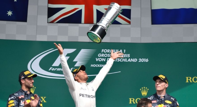 El piloto de Mercedes Lewis Hamilton, conquistó este domingo el Gran Premio de Alemania de Fórmula 1, por delante de los dos integrantes del equipo Red Bull, segundo Daniel Ricciardo y tercero Max Verstappen.