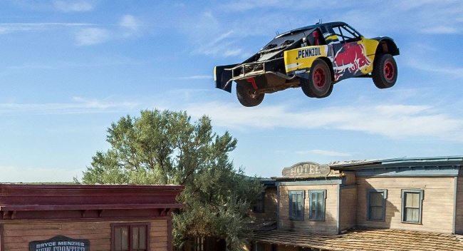 Bryce Menzies subió a su pick-up y aceleró al máximo para saltar los 115.6 metros que ocupa un pueblo abandonado en Nuevo México, Estados Unidos, batiendo así un récord mundial e ingresando al Libro Guinness.