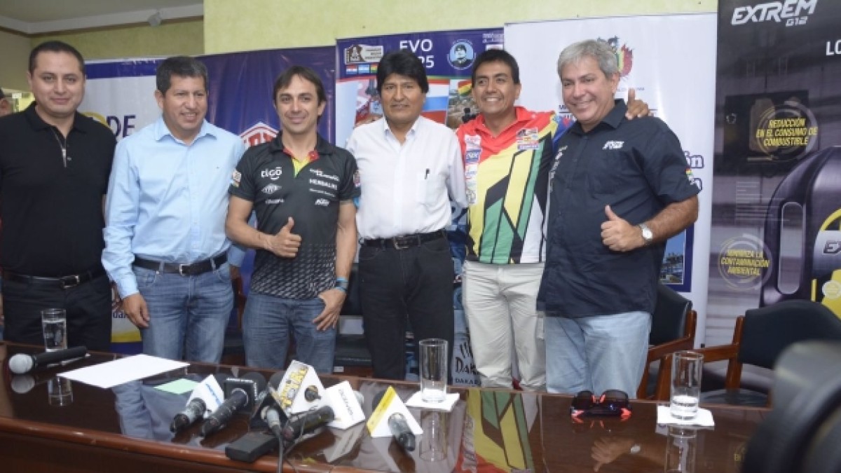 “Estamos muy orgullosos de ustedes. Todo el país estará pendiente de lo que harán en el Dakar. A través de ustedes nos unimos cada vez más como bolivianos”, dijo Evo Morales, presidente del Estado Plurinacional de Bolivia, al momento de presentarlos.