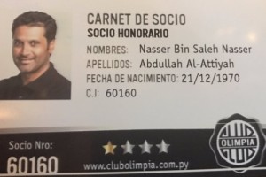 Aprovechando su estadía en Asunción, con motivo de la largada del Rally Dakar, directivos del Club Olimpia no dudaron en asociar a Nasser Al-Atiyah, príncipe de Qatar y piloto del equipo Qatar World Rally Team.