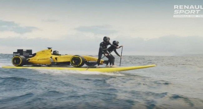 La marca francesa volverá a la máxima competición del automovilismo en la actual temporada que comenzará próximamente. Con el objetivo de promocionar su vuelta, Renault ha diseñado un original spot en el que los pilotos de la escudería, Kevin Magnussen y Jolyon Palmer, trasladan la monoplaza en una tabla de surf.