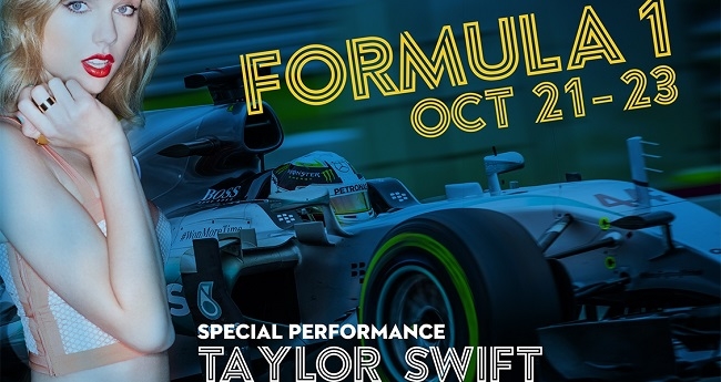 La cantante Taylor Swift fue elegida por la organización de la F1 para ser la cara del Circuito de las Américas, en Austin, Texas, a fines de octubre.