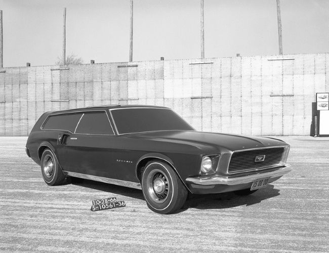 - 1965 - Un cuatro puertas: el éxito del Mustang era tanto que Ford presentó nuevas versiones para aprovechar el éxito de este deportivo. Una de estas propuestas fue el modelo de cuatro puertas, que nunca se hizo realidad.
