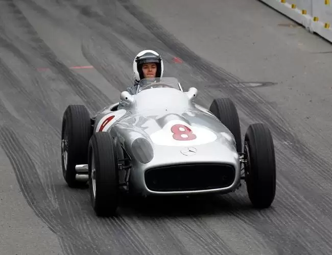 En las fotos adjuntas se lo puede ver a Nico Rosberg conduciendo otro de los automóviles que se exhiben en el Museo de Mercedes-Benz. Se trata del W 196 R Silver Arrow de 1954/1955 con el cual Juan Manuel Fangio llegó a ser campeón del mundo.