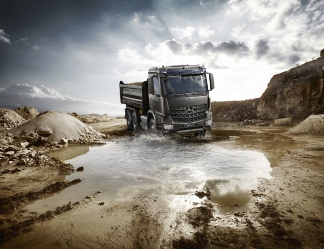 El Arocs está 100% construido para las condiciones más duras. La nueva construcción frontal del vehículo, el tren de fuerza y el concepto del chasis permiten alcanzar una sólida construcción que se adapta a las condiciones más extremas. Asimismo, el despeje del suelo aumentado en un 10% permite que el nuevo Arocs sea apto para cualquier tipo de tarea.