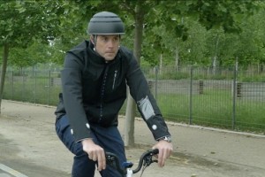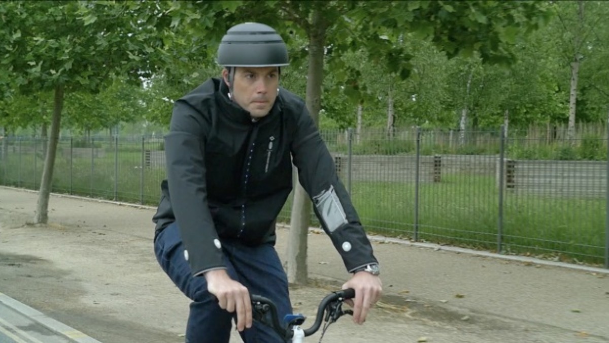 Este prototipo de campera inteligente cuenta con mangas que se iluminan para señalizar cuando los usuarios planean girar a la derecha o a la izquierda. Además, tiene conectada de forma inalámbrica un Smartphone y una aplicación de navegación para bicicletas que hace vibrar la manga para que el usuario sepa por dónde ir, utilizando de mejor manera las rutas.