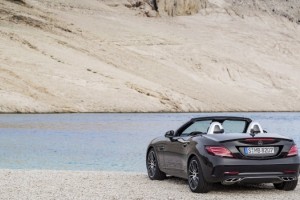 Posee vigorosas proporciones, con guardabarros de forma atlética; un paragolpes trasero con difusor negro y embellecedores de la salida de escape integrados señaliza las propiedades dinámicas del SLC. La parrilla del radiador posee efecto diamante en cromo. Su paragolpes cuenta con llamativas tomas de aire y superficie modelada dinámica. La rejilla de ventilación en el guardabarros delantero está basada en el legendario 300 SL con perfil en acabado cromado brillante. Su guardabarros se destaca por su forma atlética y grupos ópticos traseros de nuevo diseño.