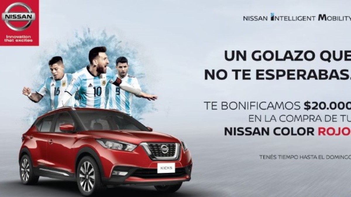 Aprovechando el agónico gol que anotó Marcos Rojo y que le dio a la Selección Nacional de Argentina la clasificación a octavos de final en el último mundial de fútbol, Nissan lanzó la campaña donde homenajeó al jugador que marcó el gol, bonificando $20.000 en la compra de cualquier modelo rojo de la marca. A partir de esta campaña, las ventas de autos rojos fueron el 48% de las ventas totales. Es decir, 4 veces más que las ventas de este color en 2017.