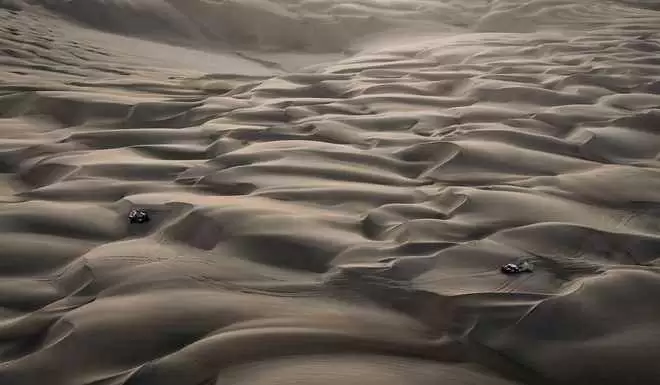 Vargiolu, que ya ha cubierto su 40° Dakar tomó la foto ganadora de dos autos entre las dunas. Al respecto de la fotografía comentó a la organización: “Había estudiado la etapa y observado que los primeros coches partían a las 6 de la mañana, momento en el que salía el sol, y el rumbo general de los competidores era el Este, lo que permitía una iluminación perfecta y la posibilidad de aprovechar los primeros rayos del sol, siempre y cuando no se presentaran brumas matinales. Por primera vez los coches salían los primeros, así que no había trazadas de las motos. ¡Algo excepcional!”