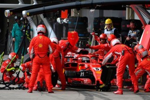 El equipo Ferrari realizó un cambio de neumáticos que será recordado por todos los fanáticos como uno de los hechos más destacados del calendario 2018. El equipo que se encarga de asistir al piloto cuando se dirige a los boxes, realizó el cambio de neumáticos en el auto de Sebastian Vettel en solamente 1s97/100.