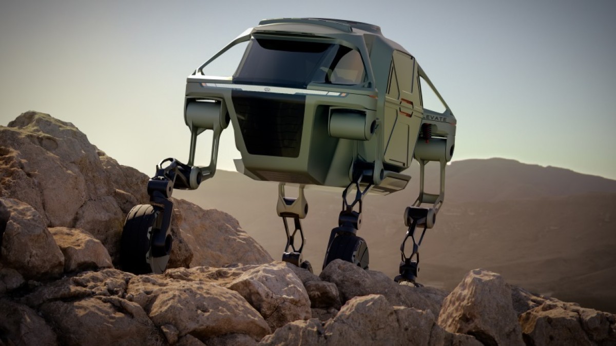 El concepto Elevate se basa en una plataforma modular de EV y cuenta con la capacidad de combinar diferentes cuerpos para situaciones específicas. La arquitectura robótica y el diseño de las articulaciones del vehículo le brindan una capacidad única que simula el andar de mamíferos y reptiles, lo que le permite moverse en cualquier dirección.
