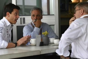 Participaron: el nuevo presidente de Daimler Benz, Ola Kallenius, Chase Carey, presidente de la F1 y Toto Wolf, CEO de Mercedes AMG F1, previo a llegar a un compromiso verbal para continuar en la competición a partir de 2020.