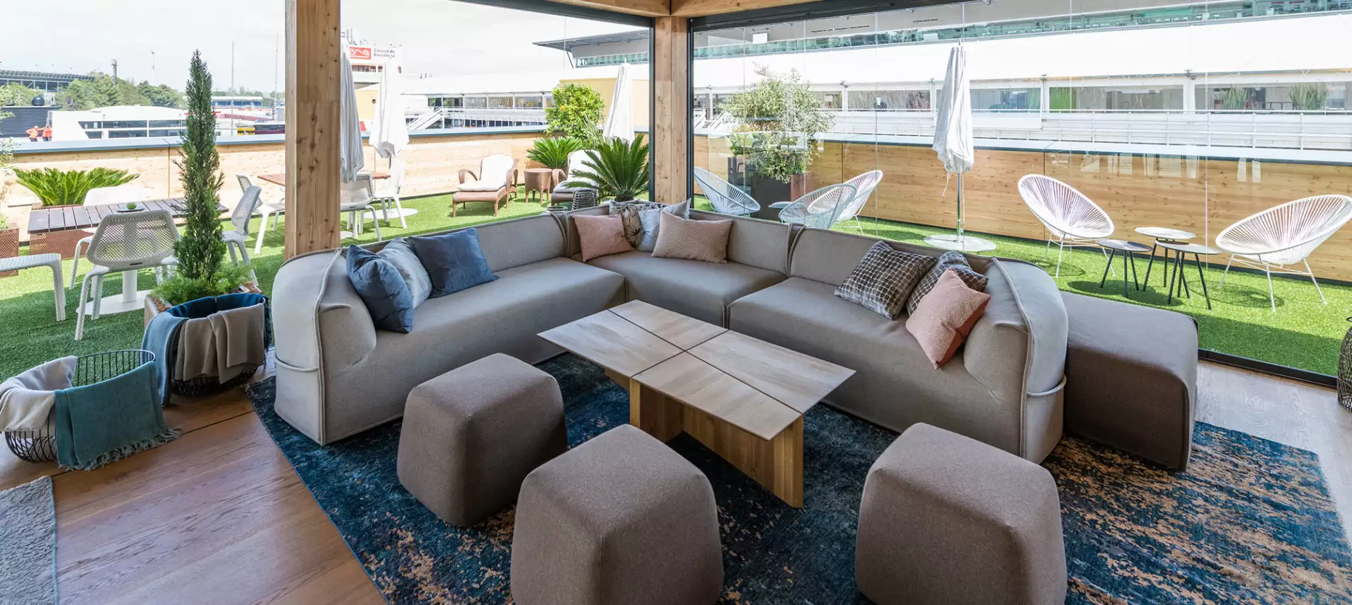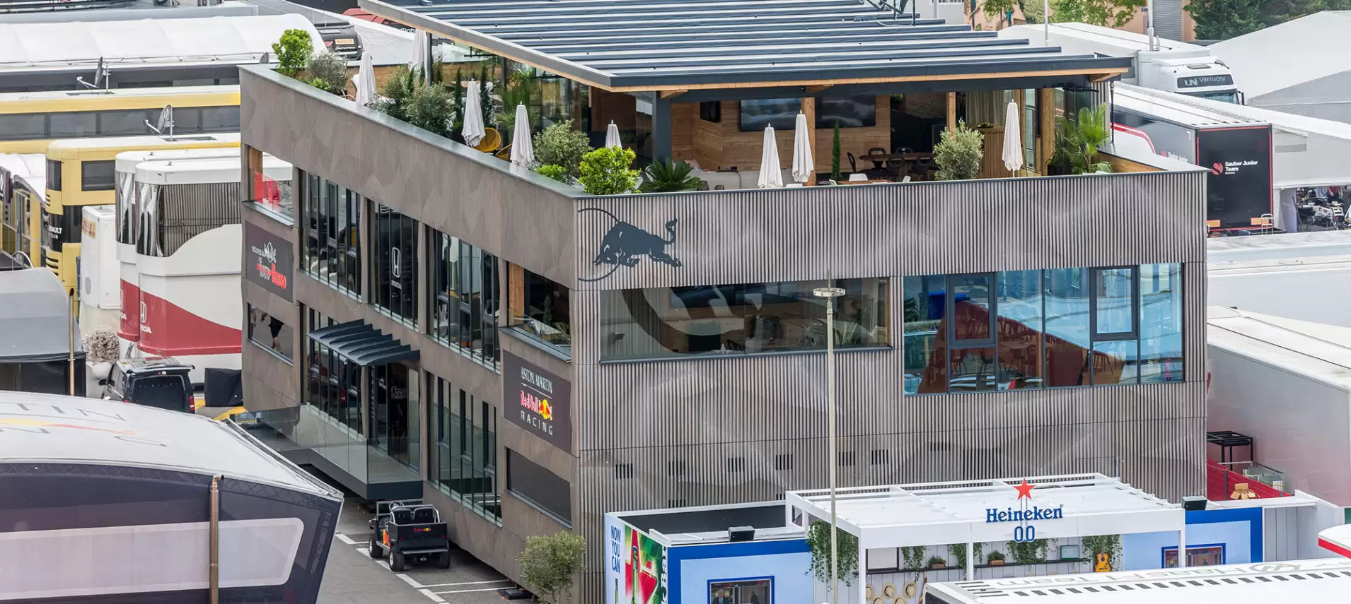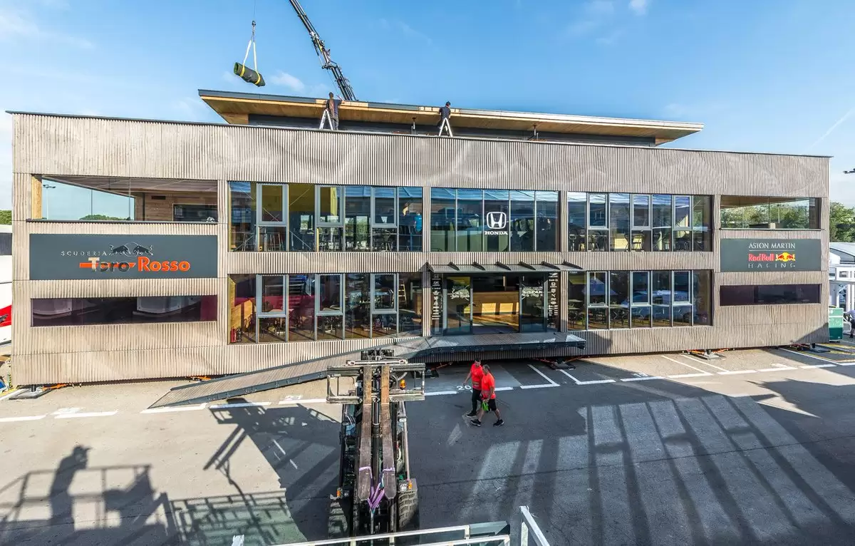 Denominada como Red Bull Holzhaus, el paddock albergará a los directivos, invitados y protagonistas previo, durante y después de la carrera, ofreciéndoles el lugar ideal para relajarse, distenderse e incluso trabajar.