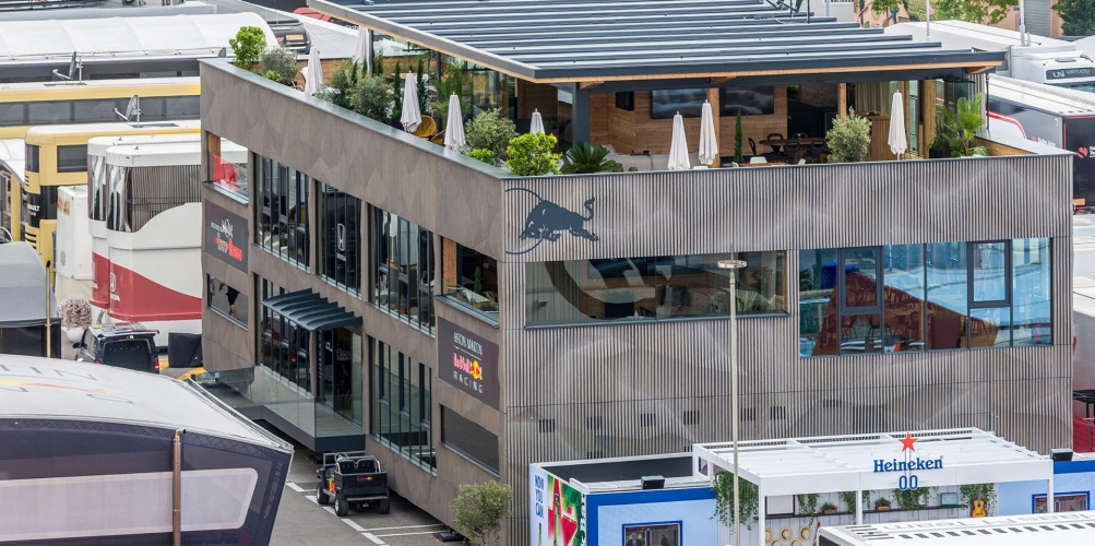 Denominada como Red Bull Holzhaus, el paddock albergará a los directivos, invitados y protagonistas previo, durante y después de la carrera, ofreciéndoles el lugar ideal para relajarse, distenderse e incluso trabajar.