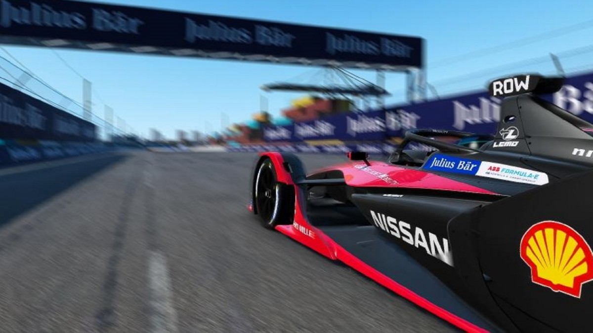 Compitiendo en una pista en línea ficticia de alta velocidad llamada "Electric Docks", los pilotos de Nissan e.dams, Oliver Rowland y Sebastien Buemi, lograron clasificar en 5° y 15° posición. La entretenida carrera llena de incidentes tuvo muchas maniobras rueda con rueda en todo el grupo, con los pilotos de Nissan llegando hasta el 3° y 8° lugar, antes de terminar la carrera en el puesto 11° y 15° para Buemi y Rowland, respectivamente.