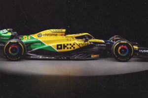 McLaren realizó junto con su patrocinador OKX la renovación completa del esquema de colores del MCL38, cambiando el naranja por el amarillo, verde y azul del icónico casco de Ayrton Senna. También contará con frases icónicas de Senna en el interior del vehículo, y con la inscripción "Senna" en los alerones delantero y trasero.